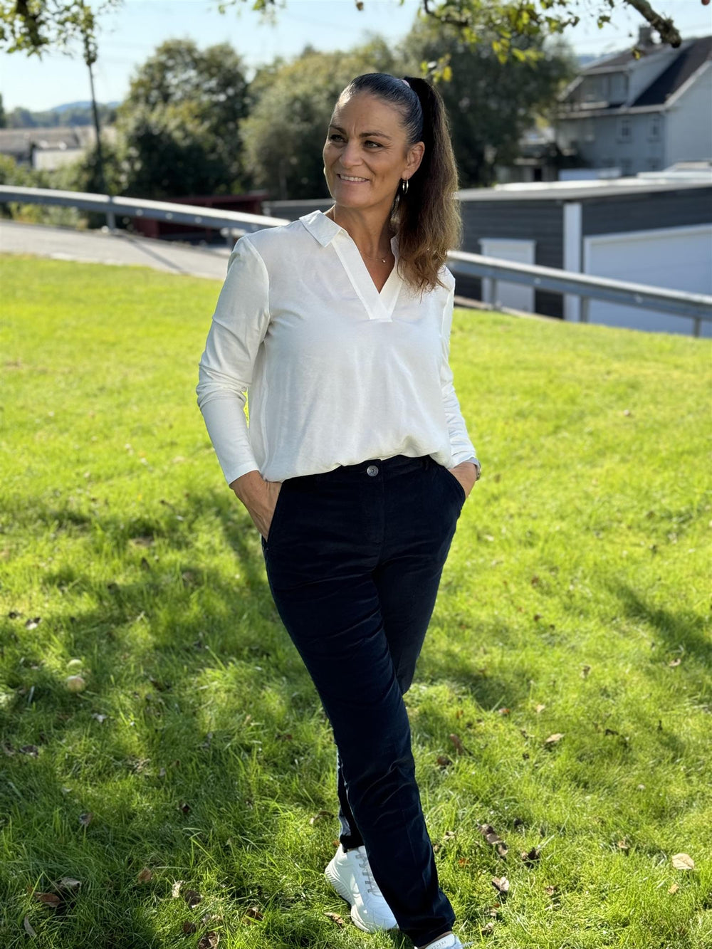 Herlig bukse i den mykeste babycord. Buksen har ankellengde. Buksen er stor i størrelsen så gå ned i størrelsen. Maria er 1.64 høy og har på seg 26 tommer, bruker vanligvis 27.