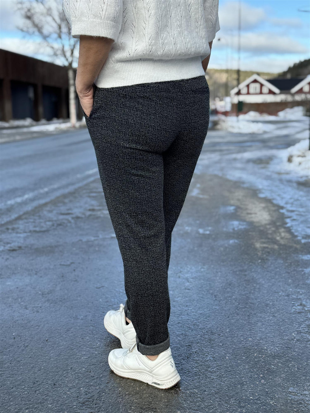 Dette er en bukse du kan pynte opp med en bluse og et par pumps eller du kan bruke den sammen med en genser eller t-skjorte og sneakers for mer casual uttrykk.