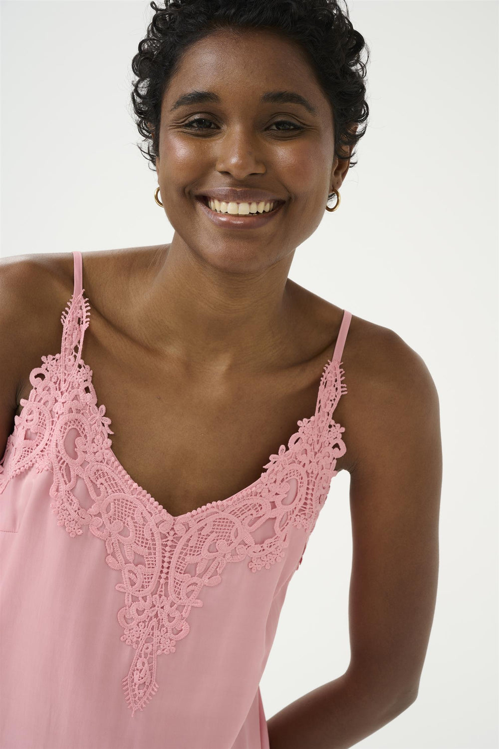 Blonde topp med delikate stropper og en klassisk blondeutførelse. Toppen har et tidløst uttrykk som passer like bra til formelle anledninger som til hverdagsbruk.