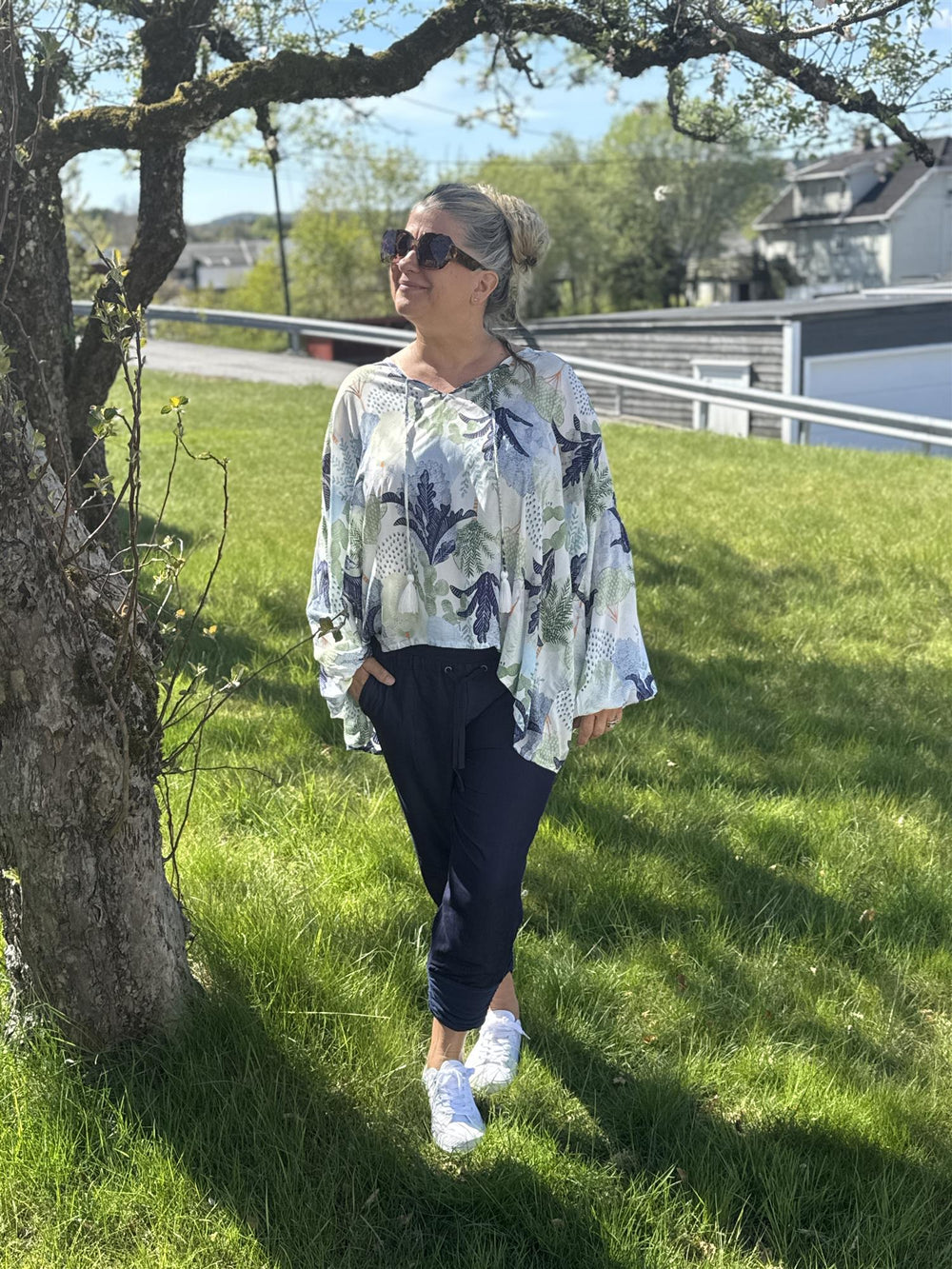🌀 Kombiner med lyse jeans, linbukser eller shorts – denne blusen passer til både hverdag og litt finere anledninger