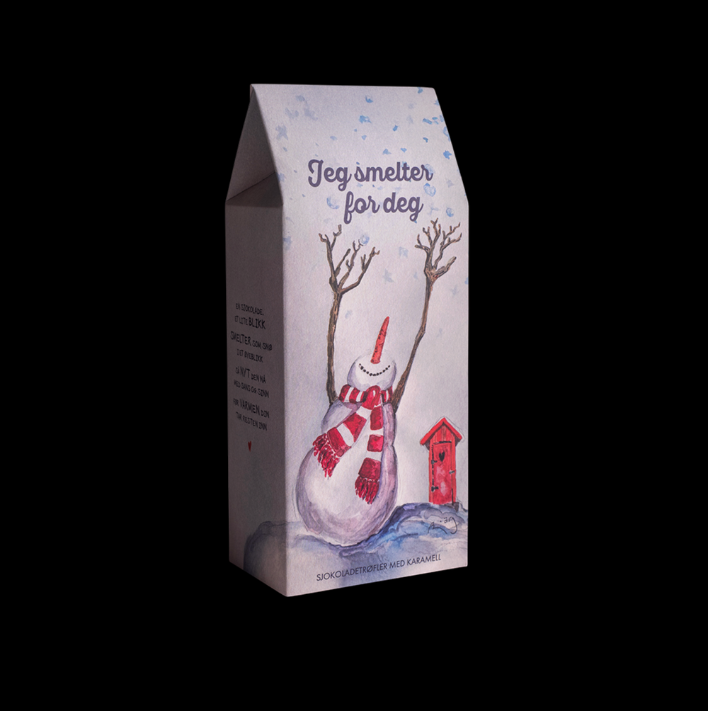 En trøffel som varmer hjertet. Rullet i mykt kakaopulver og fylt med små biter av salt toffee som får smakene til å danse. Skapt for deg som elsker å nyte øyeblikket. Perfekt følge til en kopp kaffe, når du vil stoppe opp og bare være til stede. Nydelig illustrert av Björg Thorhallsdottir.