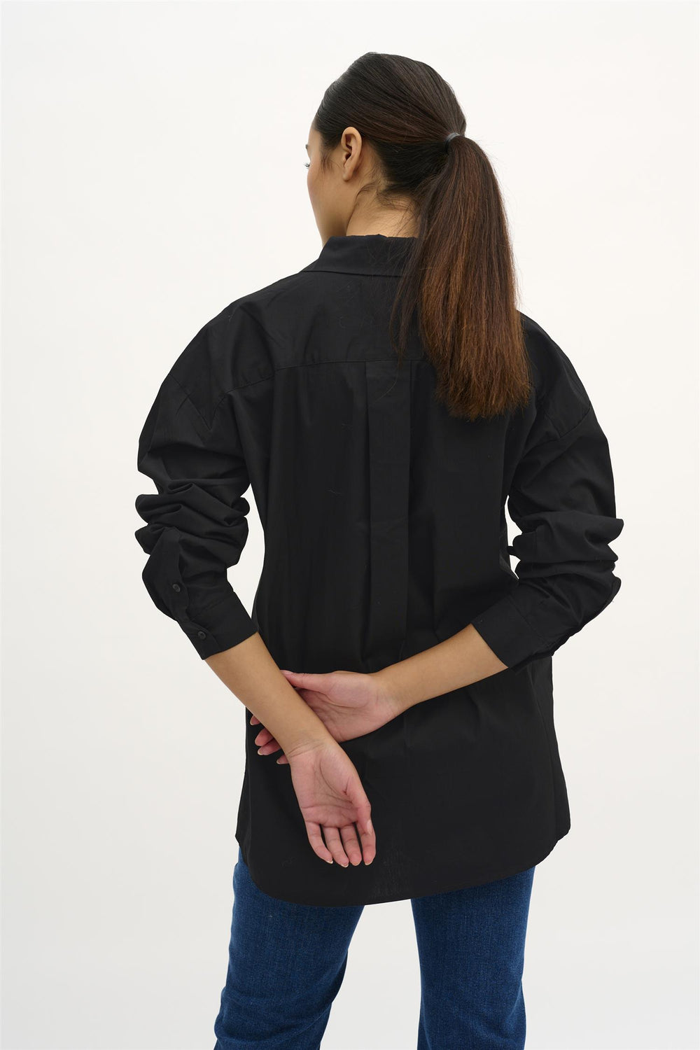 Klassisk sort storskjorte er et must til basis garderoben din! Oversized skjorte som kommer med lang arm i en deilig bomullskvalitet. Skjorten har en fin klassisk krage. Brett opp armene for en mer casual look.