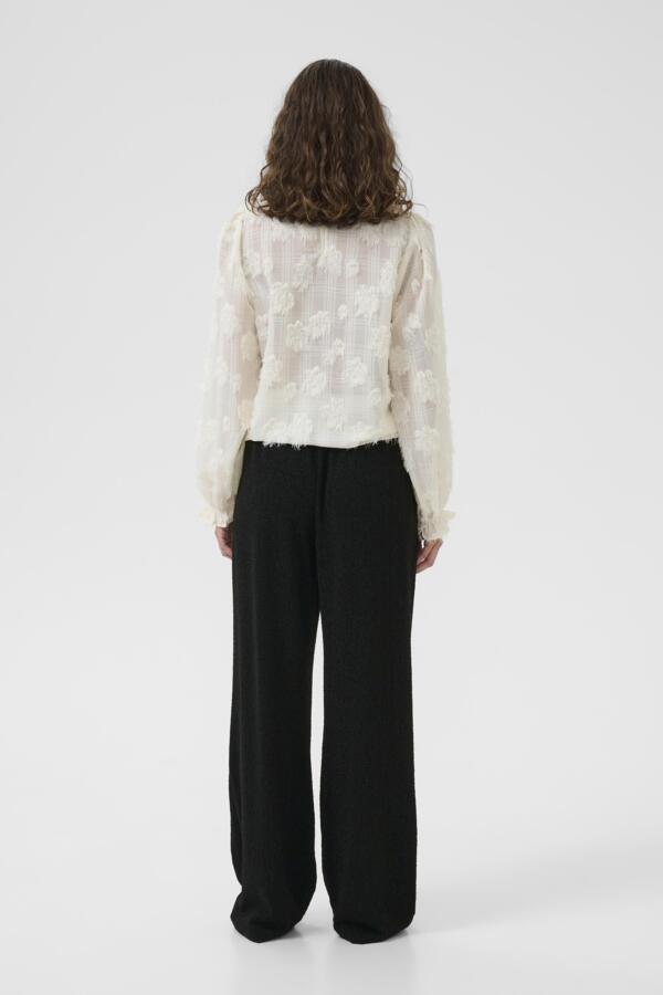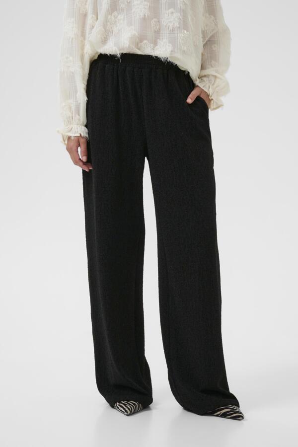 En sort bukse med det lille ekstra! Denne buksa har en nydelig struktur i stoffet med glittereffekt som gir antrekket et fint og pyntelig uttrykk. Perfekt både til å pynte seg opp til hverdags og til fest!