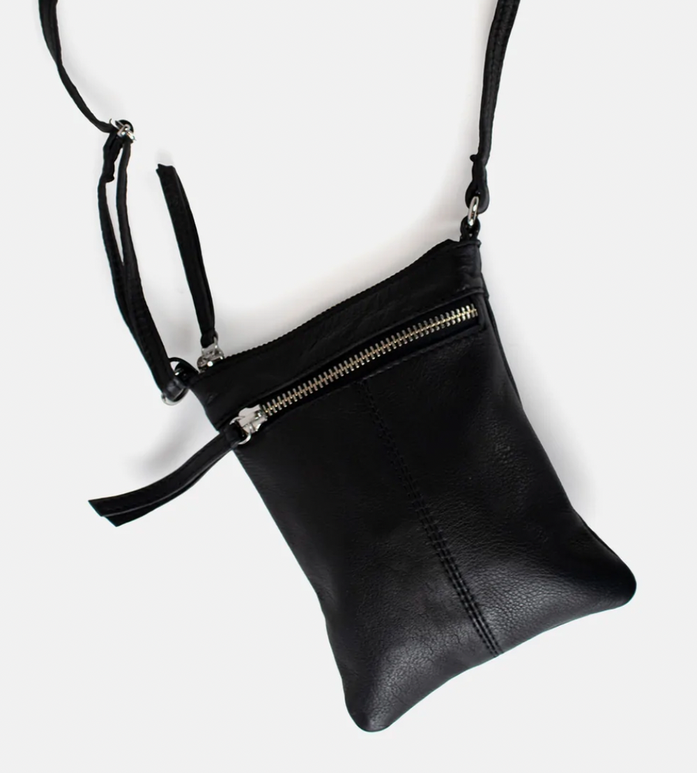 Liten og hendig skinnveske fra Redesigned by Dixie som dekker det essensielle: telefonen, nøklene og lipgloss. Vesken har en enkel og tidløs design, og du kan derfor enkelt style den med hele garderoben din og skape akkurat den stilen du ønsker. Åpnes på toppen med glidelås, og har en mindre glidelåslomme på utsiden. Justerbar crossover-reim, bær den som skulderveske, eller crossover.