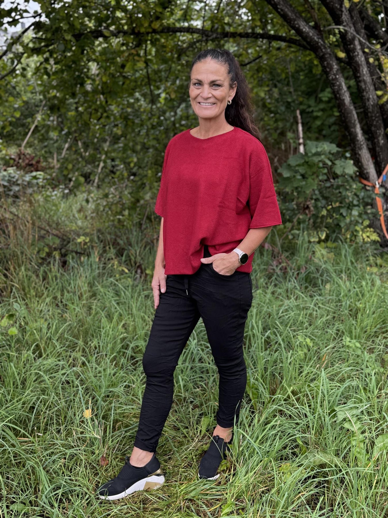 Maria har på str S/M. Buksen er stor i størrelsen. Velg str S/M opp til str 42 - og L/XL for størrelser over det.