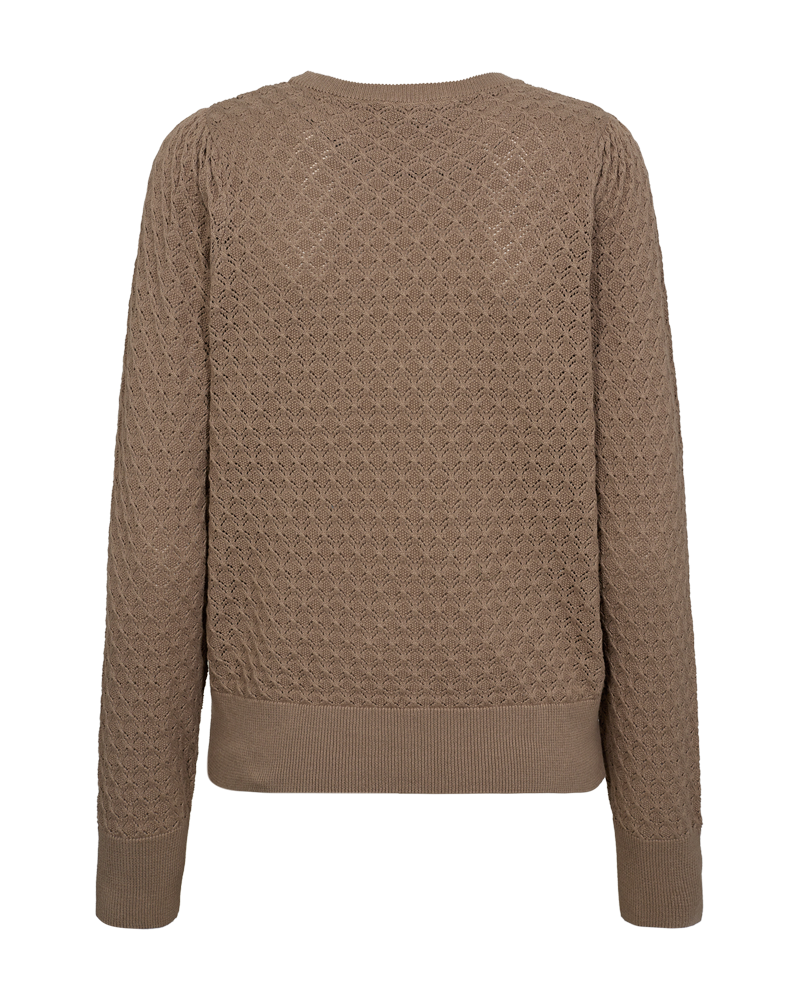 Genser fra Freequent i strikket materiale med et vakkert hullmønster. Genseren har en enkel silhuett med lange ermer, rund hals, ribbestrikkede detaljer og en elegant, avslappet passform.