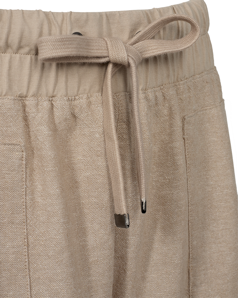Denne ankelkorte buksen er laget i en lett og pustende lin- og viskoseblanding, noe som gjør den perfekt for både varme sommerdager og overgangssesonger.