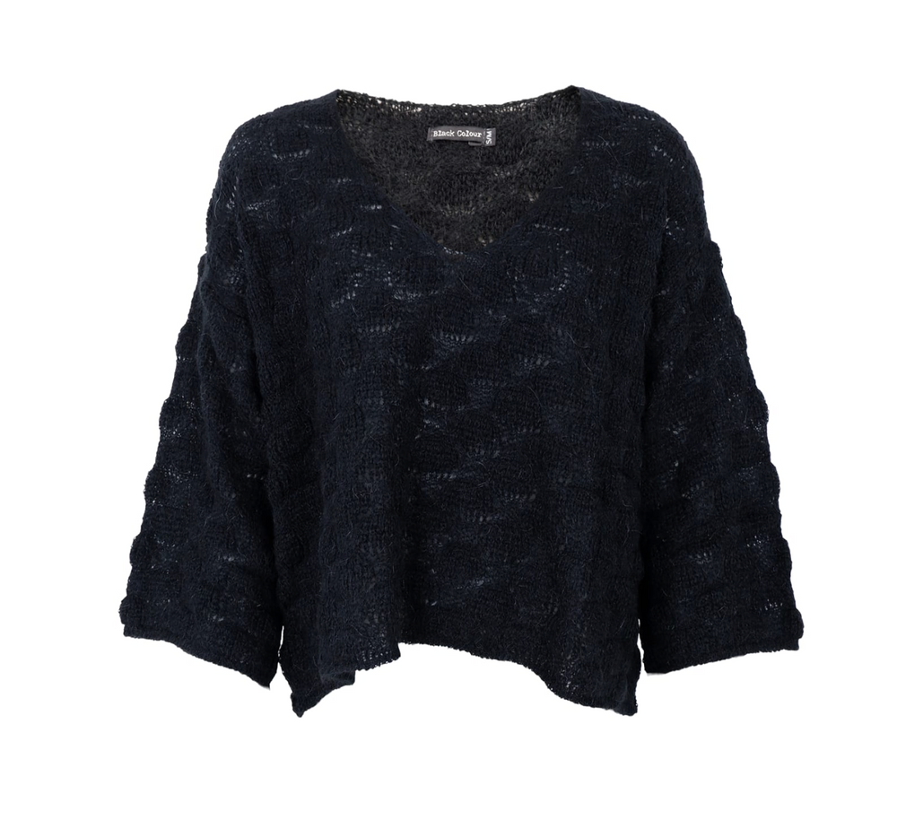 Myk genser med v-hals og firkantet strikkemønster for en moderne look. Denne genseren er komfortabel og fin!