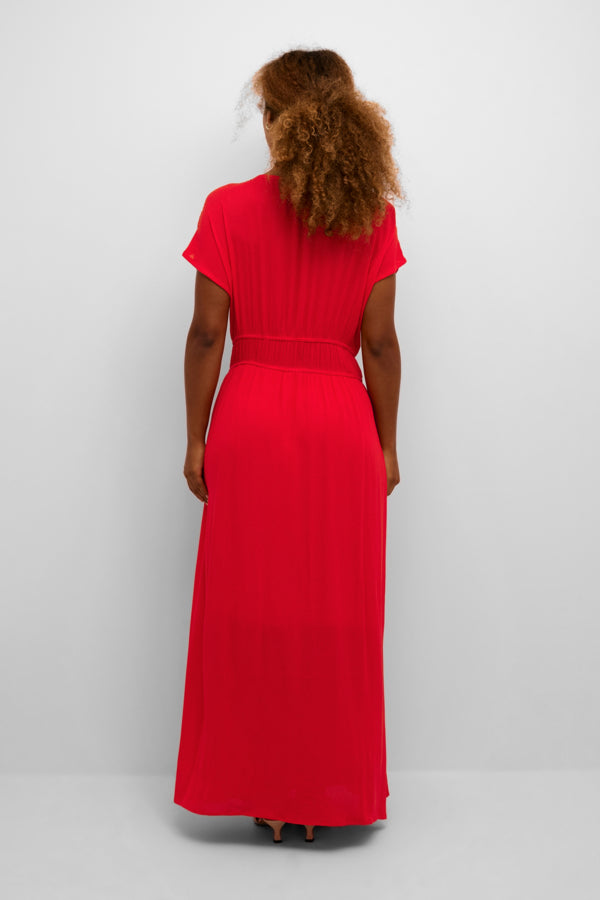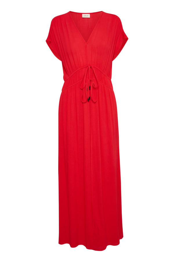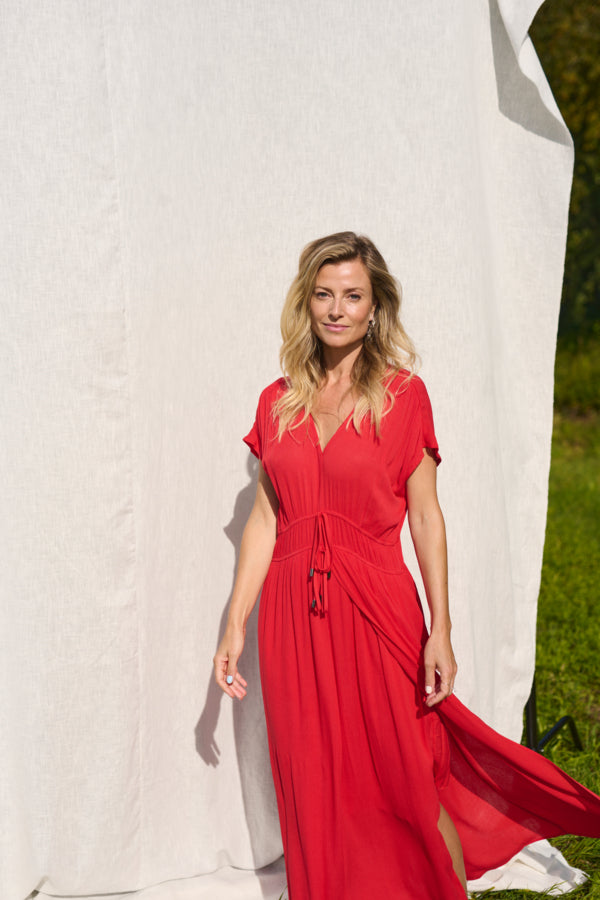 La oss introdusere Crallie kjolen fra Cream – en drømmekjole i nydelig rødfarge som oser av selvtillit og sommerglede! Denne kjolen er laget i 100 % viskose som gir et lett, pustende og behagelig stoff – perfekt til varme dager, caféturer og festlige anledninger.