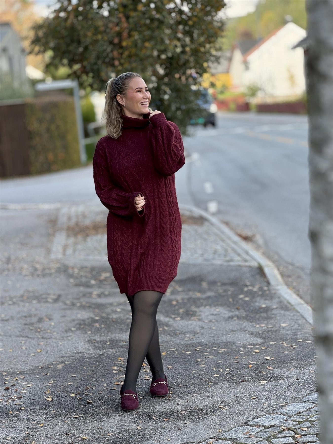 Kjolen er like fin med strømpebukse og boots som med høye støvletter – og den kan styles både til hverdags, jobb eller julelunsjen. Den varme halsen og de lange ermene gjør den ekstra god på kalde dager, samtidig som den ser skikkelig lekker ut.