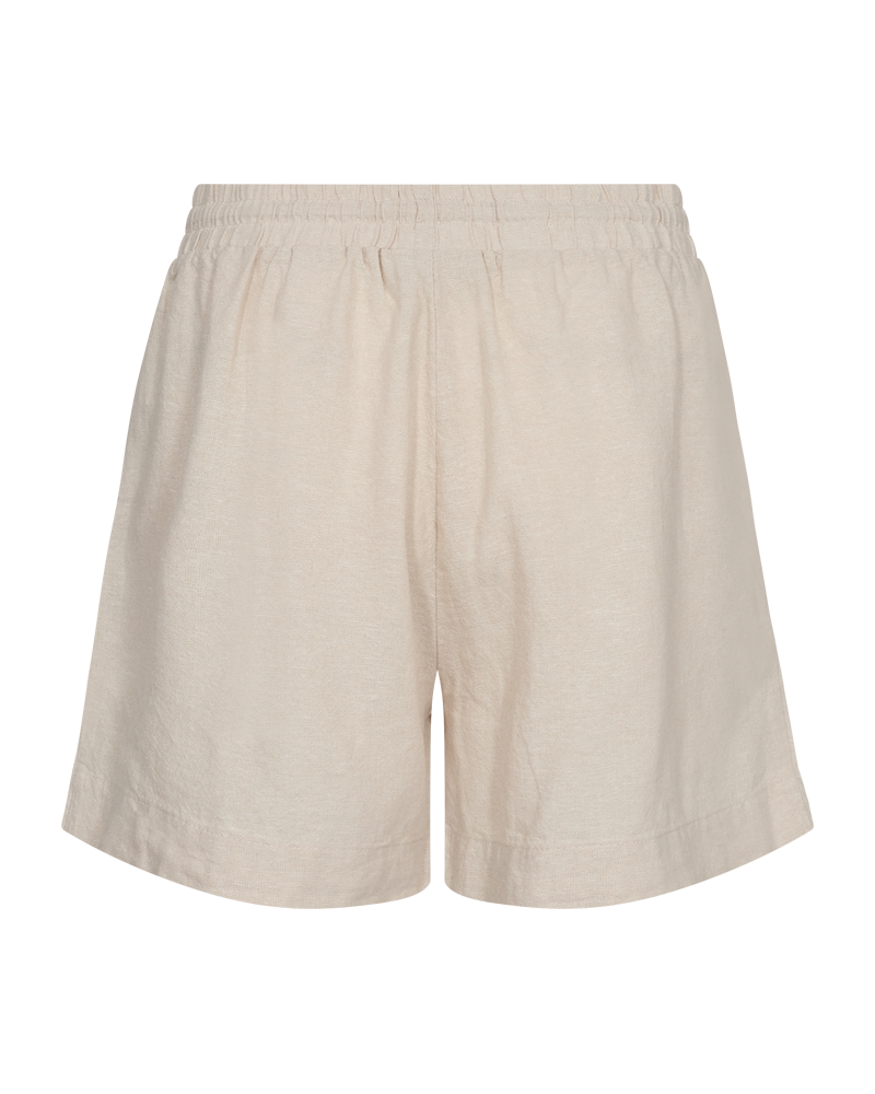 Shorts fra Freequent. Shortsen er i en myk og lett linkvalitet. Shortsen er enkle i modellen med en løs passform, sidelommer samt elastik og snøring i midjen.