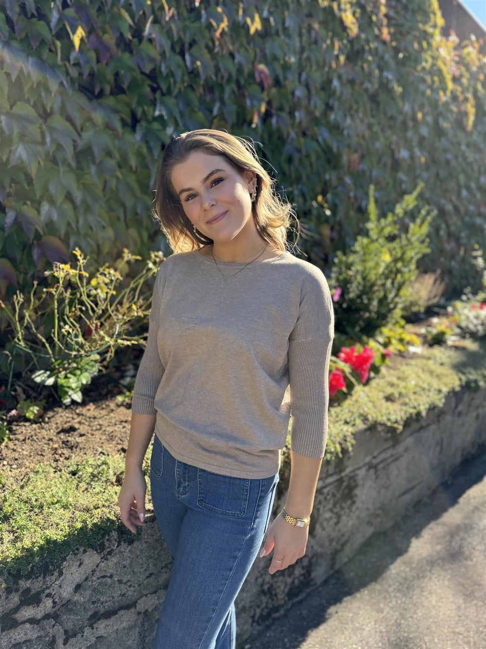 Genseren har fin utringning i halsen og smal arm med 3/4 lengde.