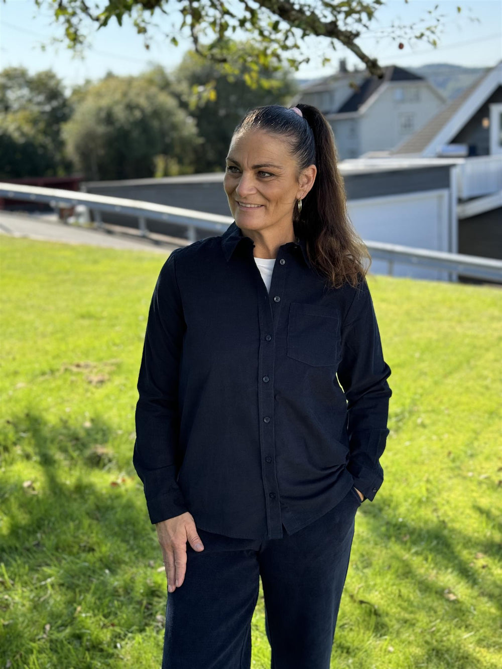 Cordblusen fra CECIL. Blusen har en skjortekrage med knappeåpning og lange ermer med oppbrett. En brystlomme.