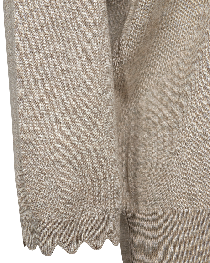 Genser fra Freequent i et mykt, finstrikket materiale. Genseren har trekvart ermer, V-hals, fine kamskjellkanter samt en elegant, avslappet passform.