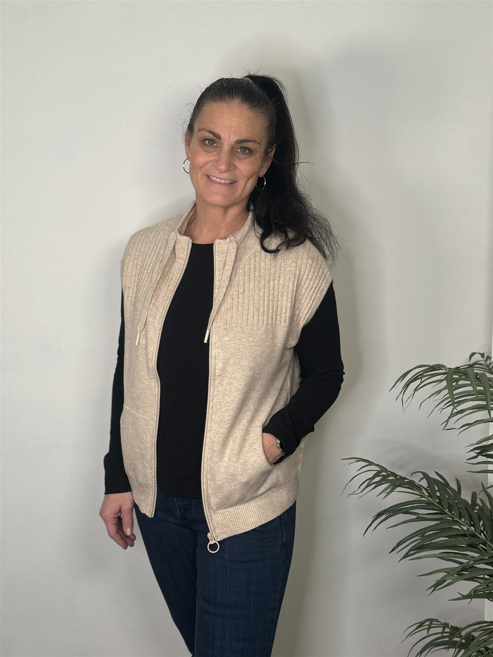 Vest fra Cecil som er designet for både komfort og stil. Den er laget av et mykt og fleksibelt materiale med stretch. Vesten har en klassisk glidelåslukking og praktiske lommer, noe som gjør den både funksjonell og stilig. Perfekt til å bruke over en basisgenser eller skjorte for en avslappet og moderne look.