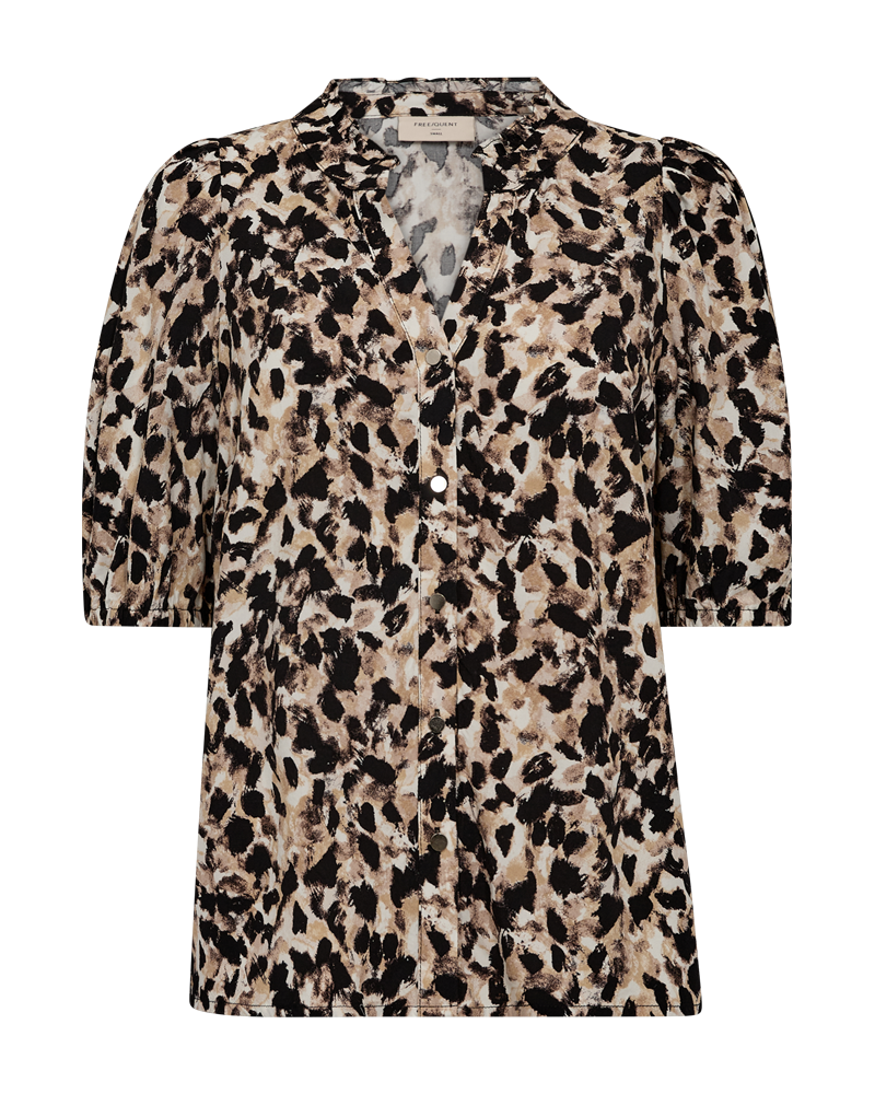 Leter du etter en luftig og elegant bluse som passer til både jobb og fritid? FQadney blusen fra Freequent er laget i et mykt, bærekraftig viskosestoff med et lekkert allover-print. Med sine korte puffermer, flatterende V-hals med rysjedetaljer og avslappet passform, er dette en bluse som føles like behagelig som den ser bra ut!