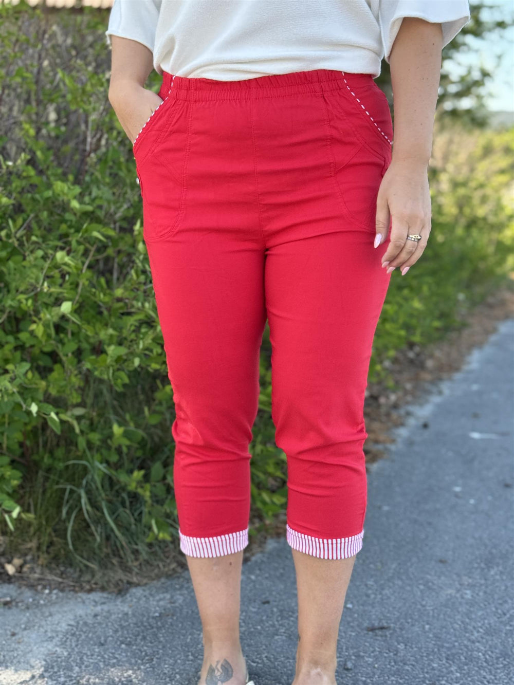 Capribukse med stretch og stripete detaljer – perfekt til vår og sommer!