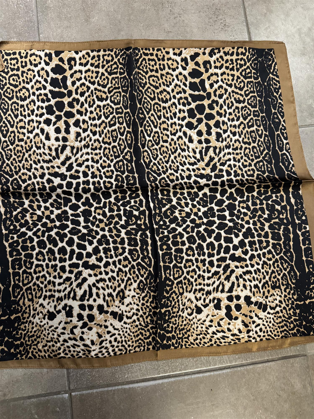 Stilfullt silkeskjerf med tidløst leopardmønster og brune detaljer. Bruk det rundt halsen, i håret eller på vesken – et plagg som løfter antrekket!