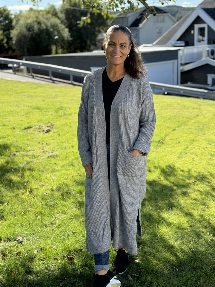 Lang og deilig cardigan fra kaffe med 10% ull. Utrolig myk og god cardigan som holder deg varm på kjølige dager.