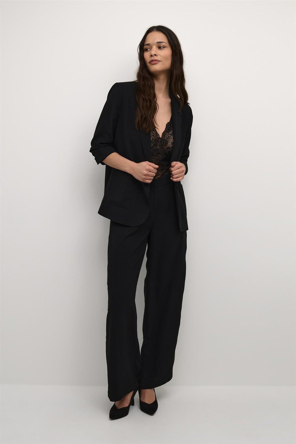 Lekker sort dressjakke fra Cream med 3/4 armlengde med draperinger. Lukkes med en knapp foran. Dette kan fort bli din nye favoritt blazer. Klassisk og fin. Bruk den alene eller sett sammen med bukse i samme serie.