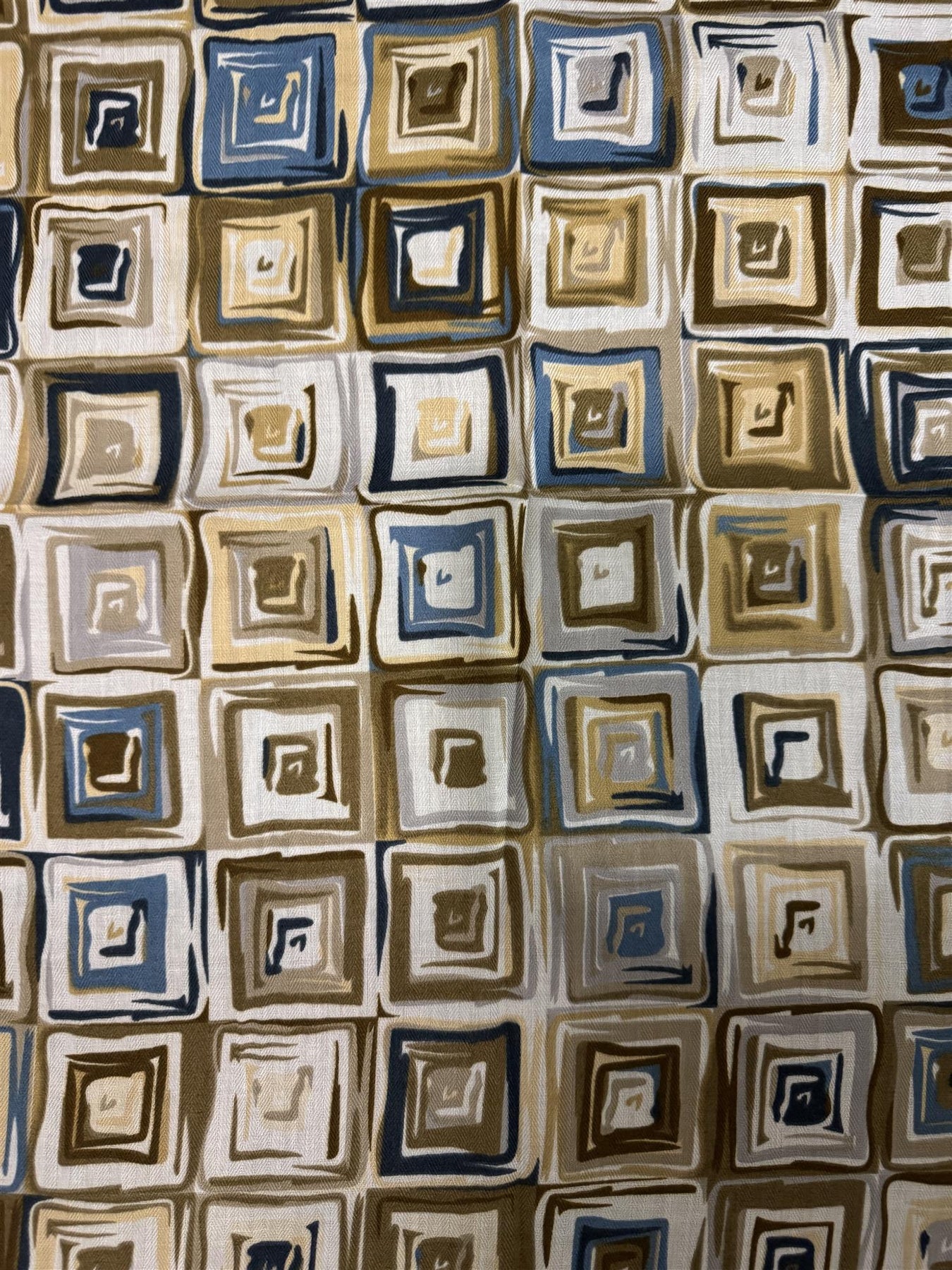 Bandana skjerf med geometrisk rutemønster i blå, beige og brune nyanser. Det moderne designet gir en fresh og stilfull look som passer perfekt både til jobb og fritid. Bruk det rundt halsen, i håret eller som et kult tilbehør på vesken.