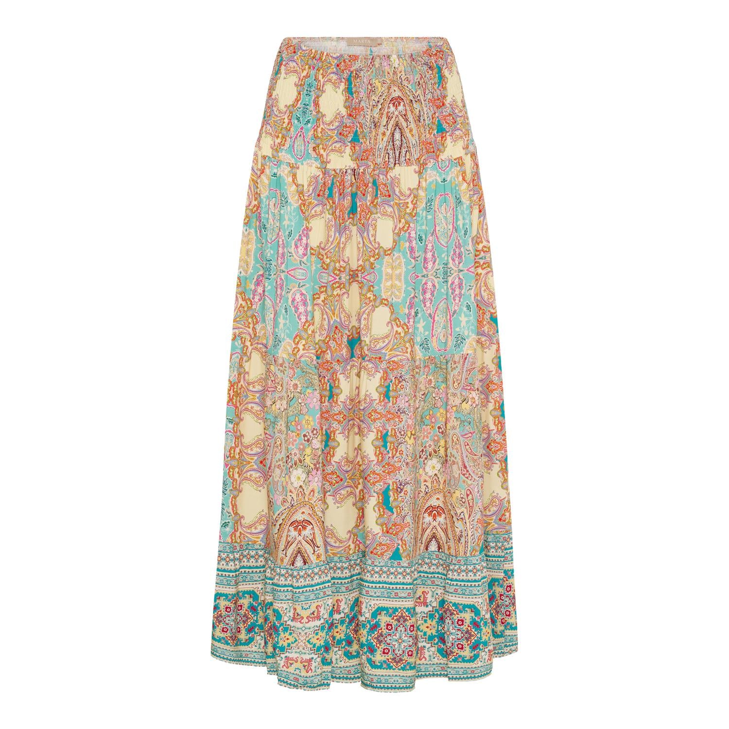 Herlig lett og luftig vår og sommerskjørt i viskose. Elastisk strikk i livet. Skjørtet kan brukes både som skjørt og kjole. Skjørtet har bred smocking strikk i livet som passer til de fleste.