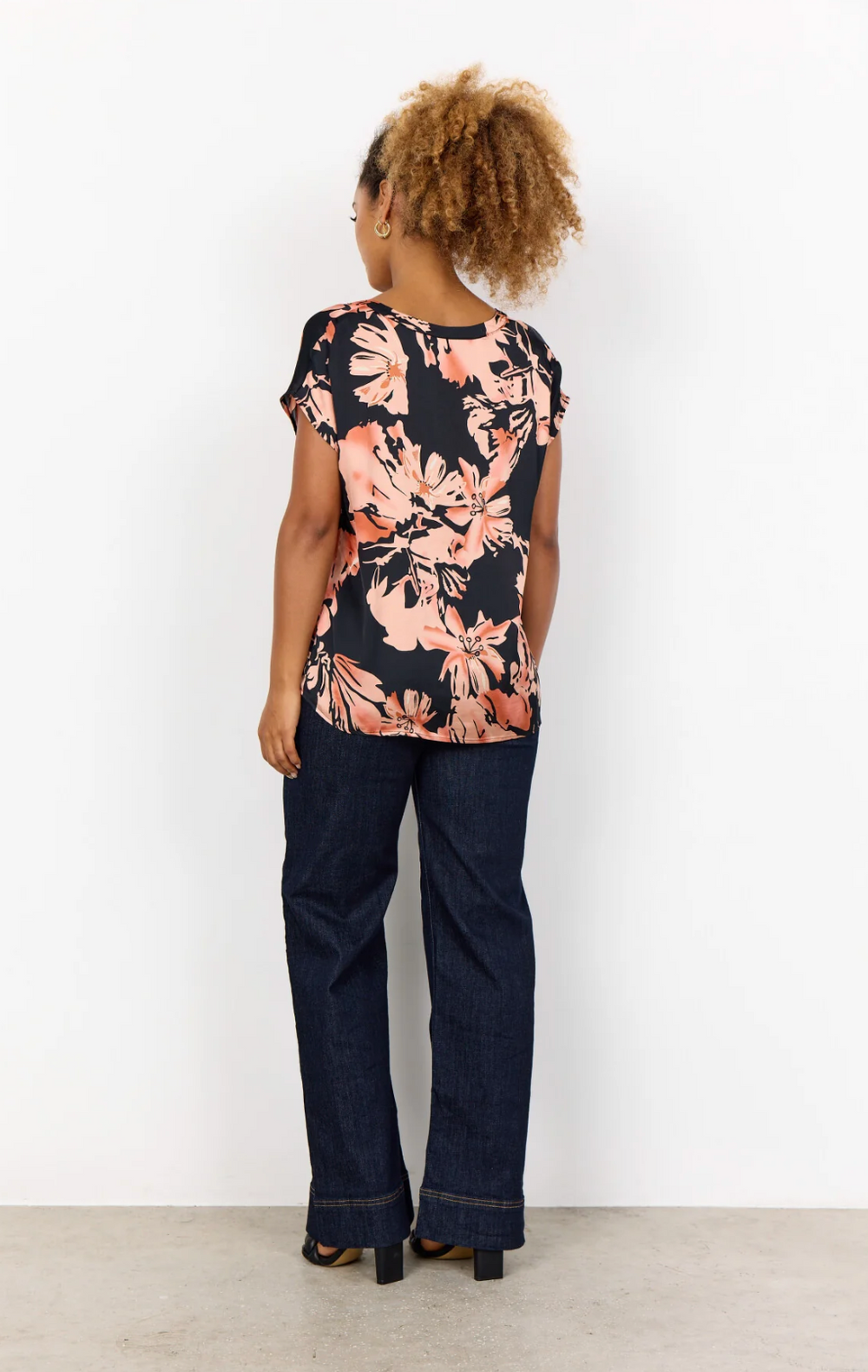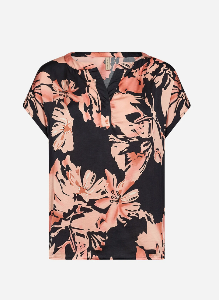 SC-PEACH er en lett og luftig bluse i et mykt og behagelig viskose materiale som puster godt. Blusen har en avslappet passform, flatterende V-hals og korte ermer, perfekt for både hverdag og fest. Det vakre blomsterprintet gir et friskt uttrykk. Style den med et par pene bukser eller et skjørt for en elegant look fra dag til kveld.