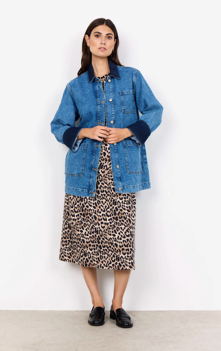 SC-DOLORES 6 er en denimjakke laget i en behagelig bomullkvalitet. Den har en stilig kontrastkrage, knappelukking, bryst- og sidelommer samt kontrastmansjetter. Perfekt som et lag-på-lag-plagg til enhver outfit! Lommene og kontrast kragene gjør jakken mer original og kul! Kan styles både opp og ned!