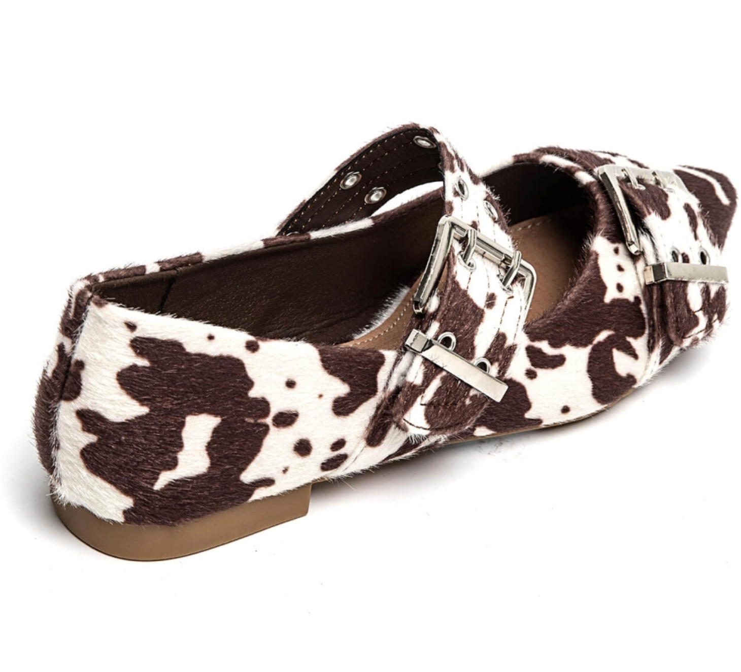 Gi antrekket ditt en trendy vri med Liva sko fra Marta! Disse unike skoene i lekent kumønster kombinerer komfort med stil, og de to brede spenner gir et kult og edgy uttrykk. Perfekte til jeans, kjoler eller skjørt – disse skoene blir garantert et blikkfang i garderoben din.