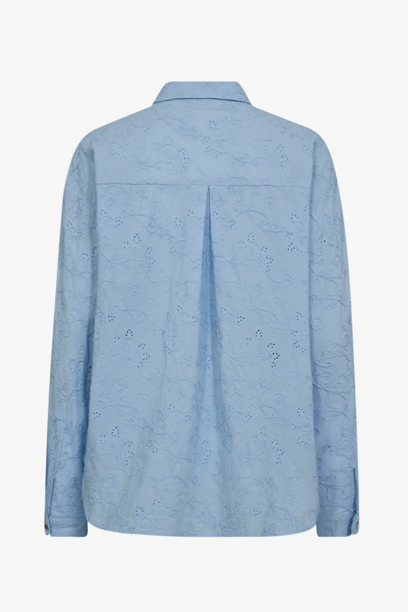 Denne nydelige skjorten er laget i en lett kvalitet med et delikat, blomstrete broderimønster som gir en feminin og elegant touch. Skjorten har lange ermer, klassisk krage, og fine perlemorsknapper som gir et sofistikert uttrykk. Den løse passformen gjør den behagelig og allsidig – perfekt til både hverdag og festlige anledninger.