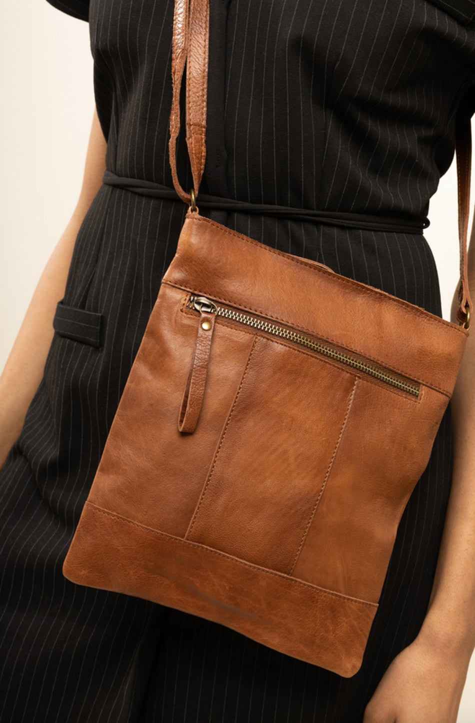 Lillesand Urban veske er en praktisk og fin cross body veske i mykt valnøttfarget skinn.