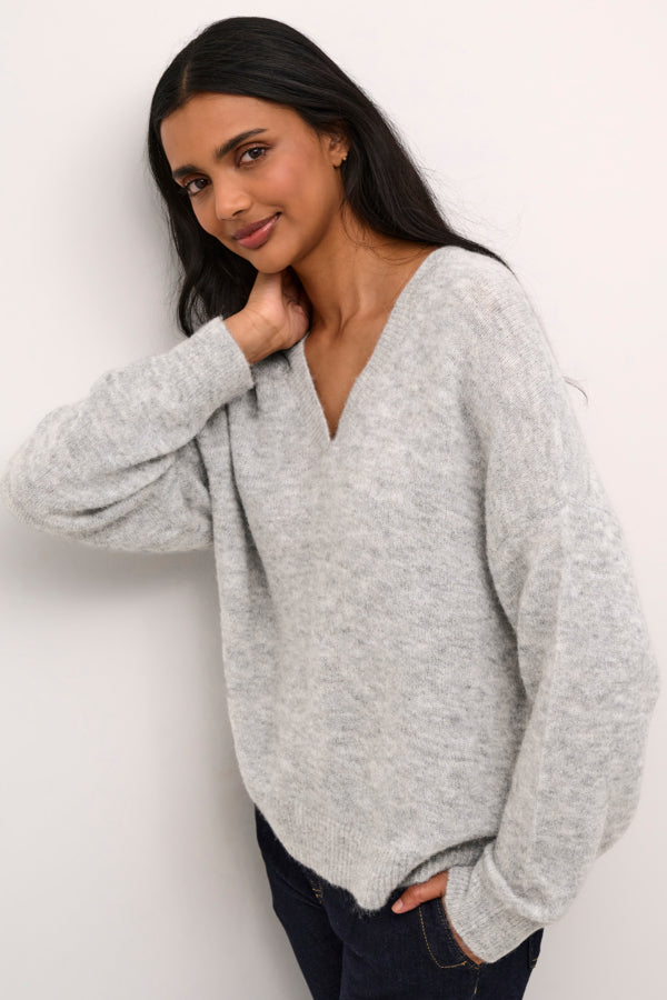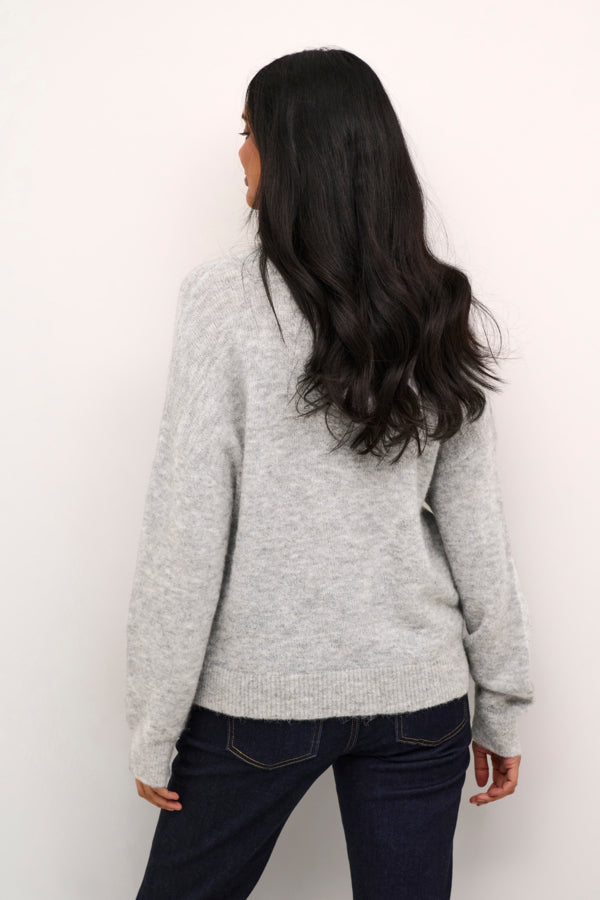 Cucacheia Ullgenser fra Culture er en perfekt kombinasjon av stil og komfort. Den har en avslappet passform, v-hals hals og ribbestrikkede detaljer som gir et moderne uttrykk. Laget i en luksuriøs ullblanding med alpakka, som gjør den både varm, lett og behagelig å ha på seg.