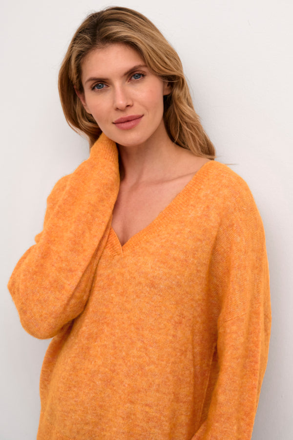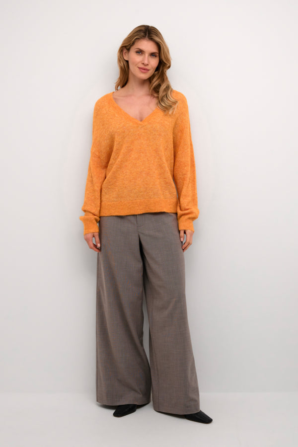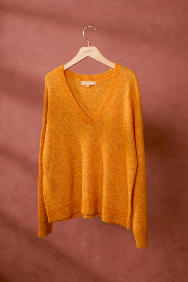 Cucacheia Ullgenser fra Culture er en perfekt kombinasjon av stil og komfort. Den har en avslappet passform, v-hals hals og ribbestrikkede detaljer som gir et moderne uttrykk. Laget i en luksuriøs ullblanding med alpakka, som gjør den både varm, lett og behagelig å ha på seg.