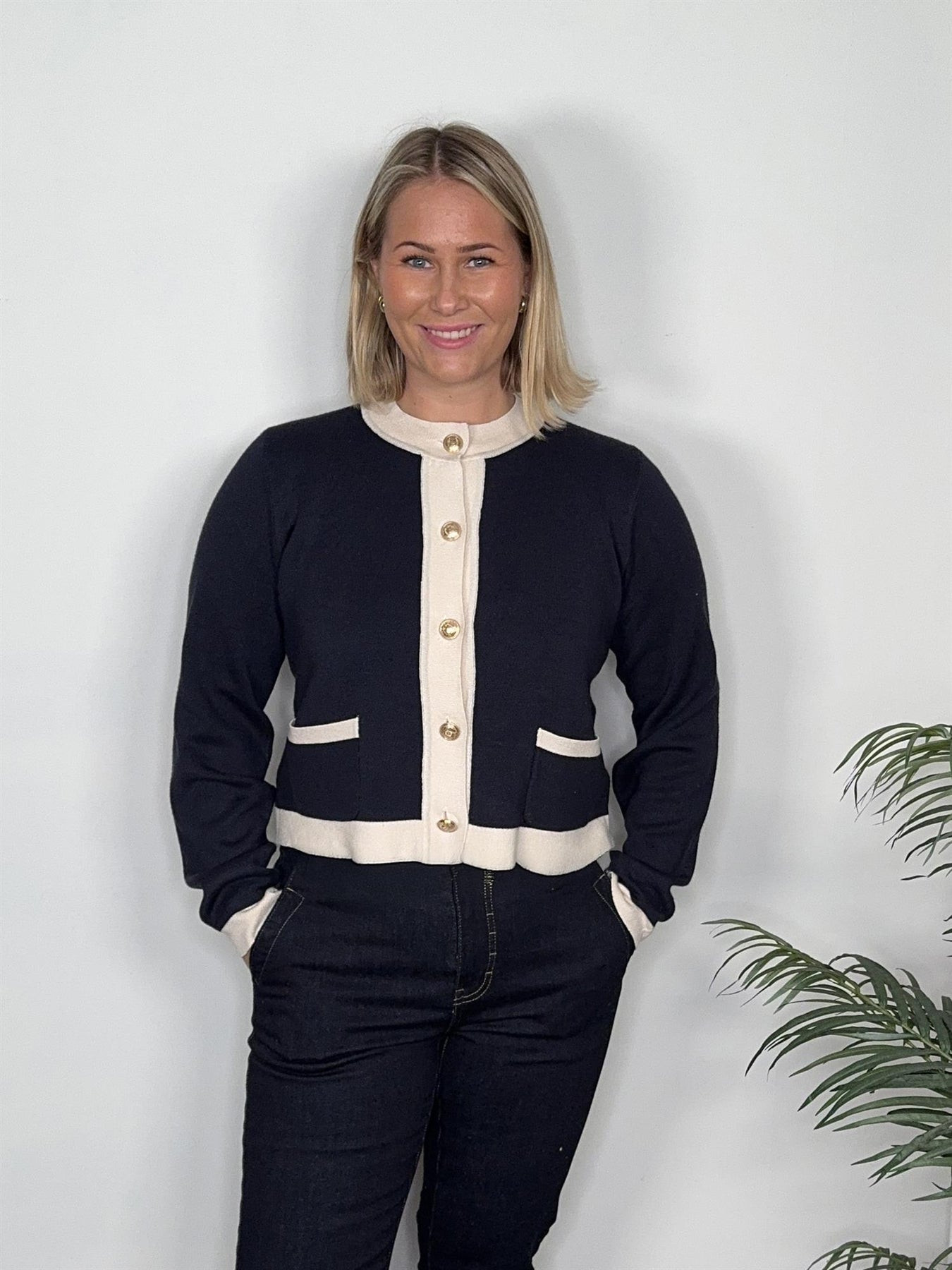 Den korte lengden og rene snittet gjør cardiganen enkel å style – prøv den med jeans for en avslappet look, eller over en kjole for et mer formelt antrekk.