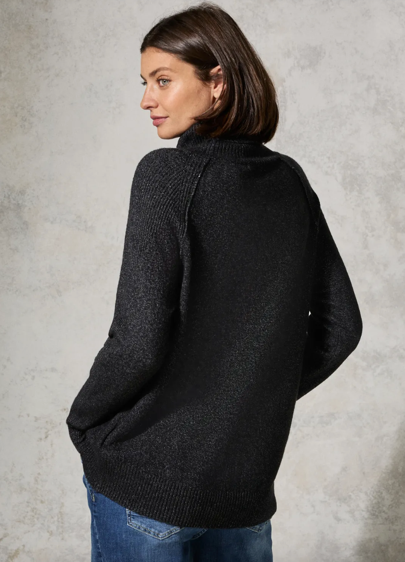 Denne strikkegenseren fra CECIL laget i myk bomullsmiks, gir den både varme og komfort. Med lange ermer, mansjetter og høy hals, er den perfekt for kjølige dager. Enkel å style med jeans eller skjørt for en avslappet, men trendy look.