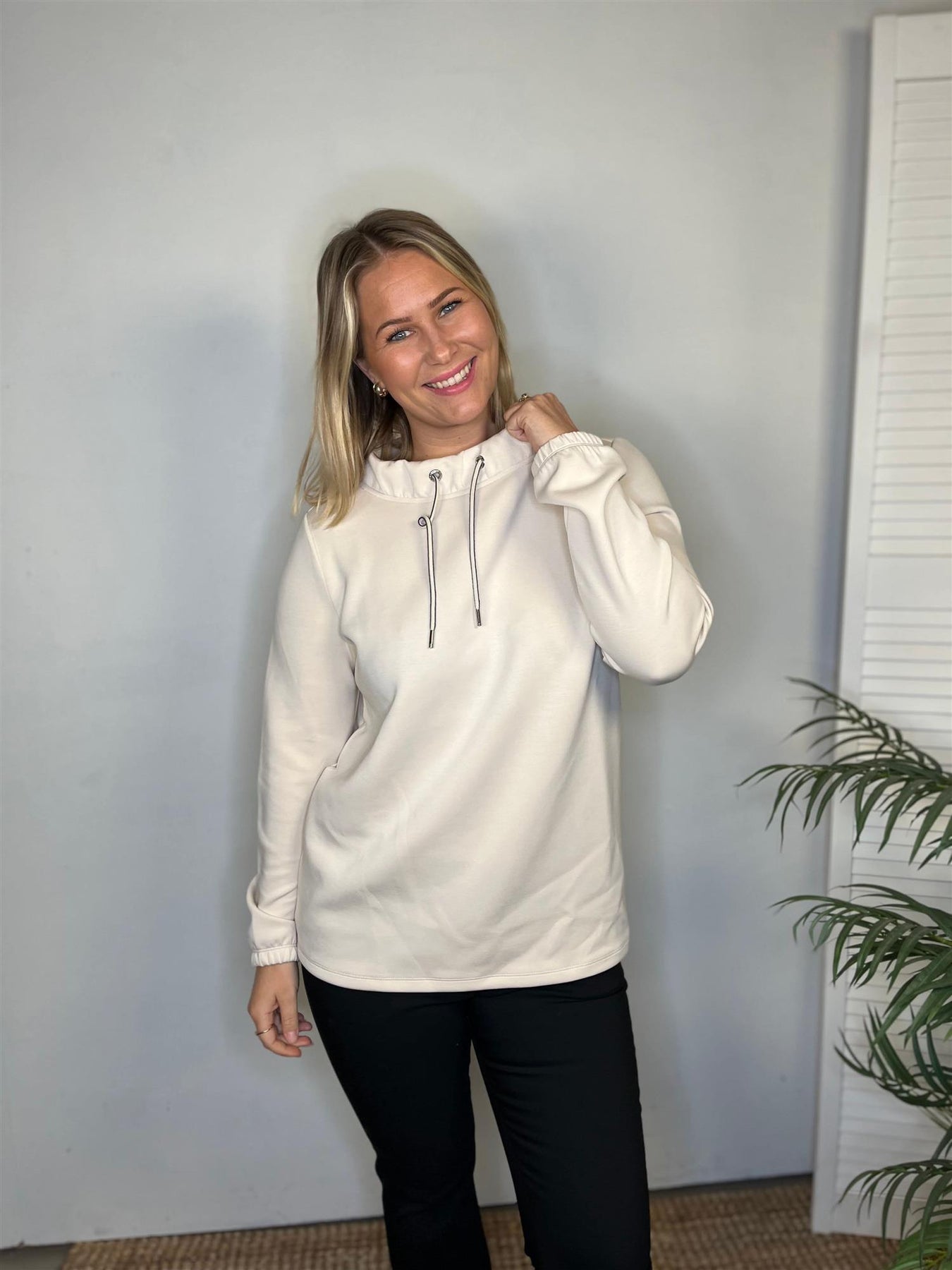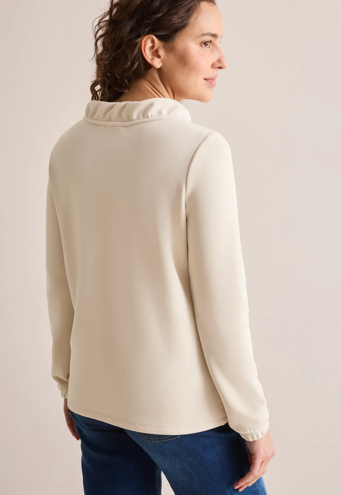 Denne genseren fra CECIL for damer er laget i en myk modalblanding som gir en behagelig følelse på huden. Den har funnelneck og lange ermer med elastiske mansjetter, og er et allsidig basisplagg som passer perfekt til avslappede antrekk.