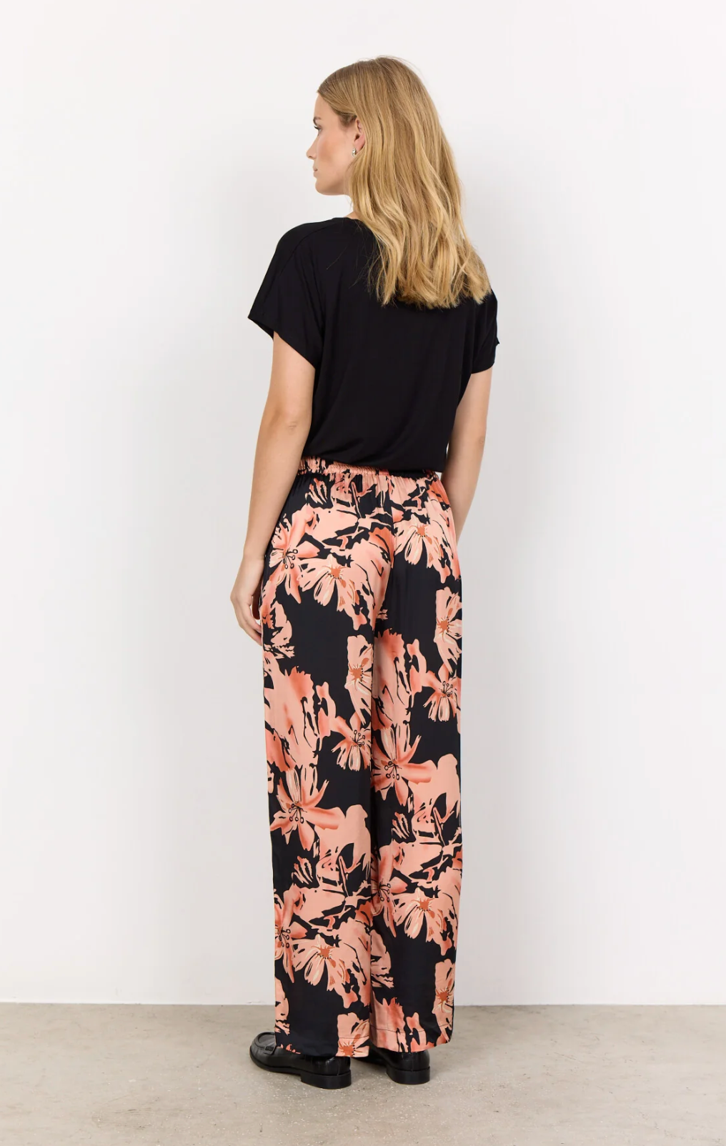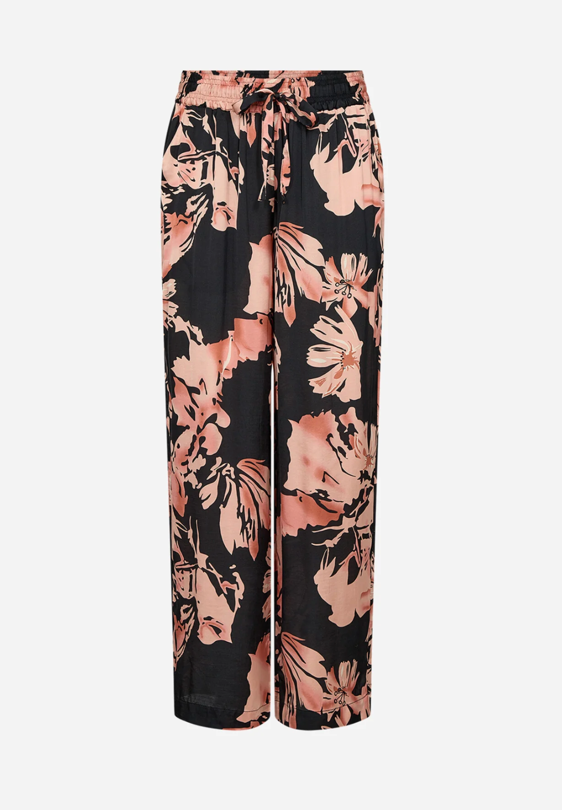 SC-PEACH 3-B bukser er laget av en myk og behagelig viskose kvalitet. De har en avslappet passform, elastisk midje med justerbare snorer og et vakkert blomsterprint. Style dem med en ensfarget topp og dine favorittsko, eller kombiner dem med den matchende overdelen for en gjennomført look. Her kan du få ett sett om du liker det!
