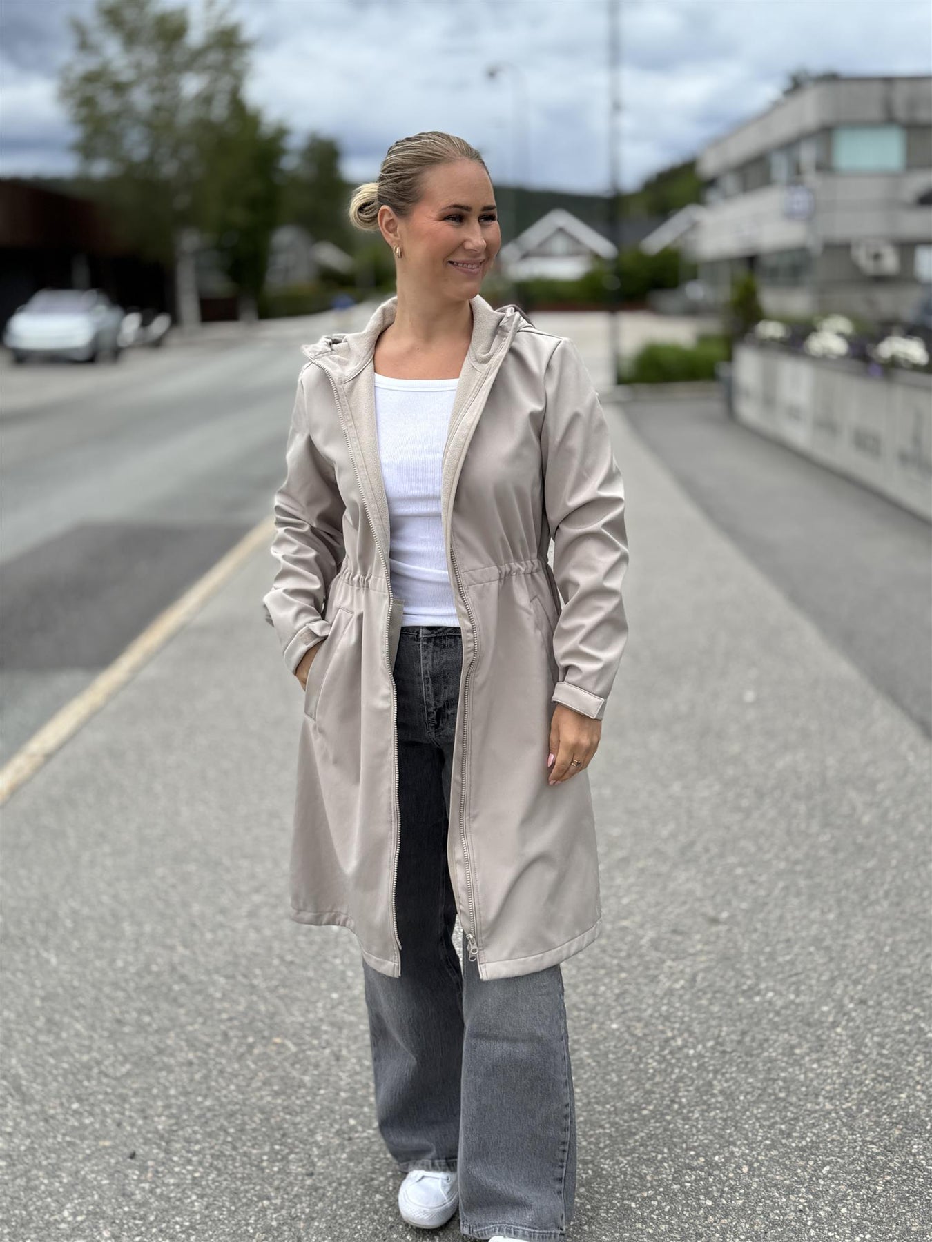 Fargen sand gir et tidløst og elegant uttrykk som passer til enhver garderobe. Jakken har praktiske lommer, en beskyttende hette og toveis glidelås som gjør den perfekt for både byliv og turer i naturen.