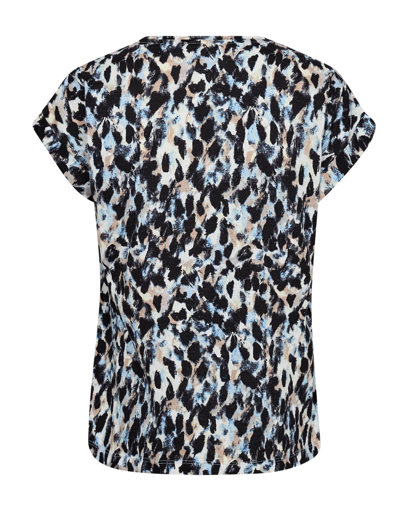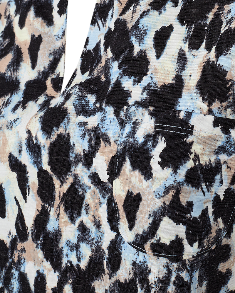 T-skjorten kommer med et moderne dyreinspirert print. Den har en feminin V-hals, korte ermer med oppbrett og en liten brystlomme som gir det lille ekstra.