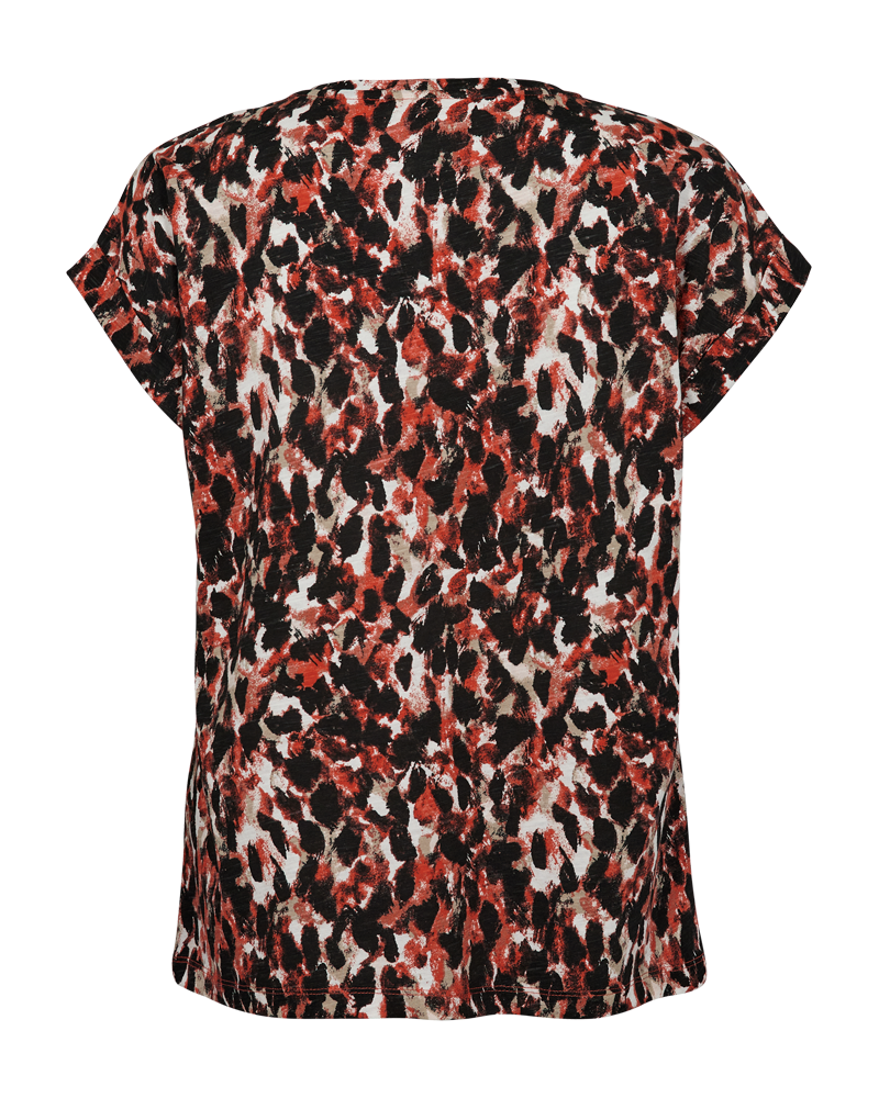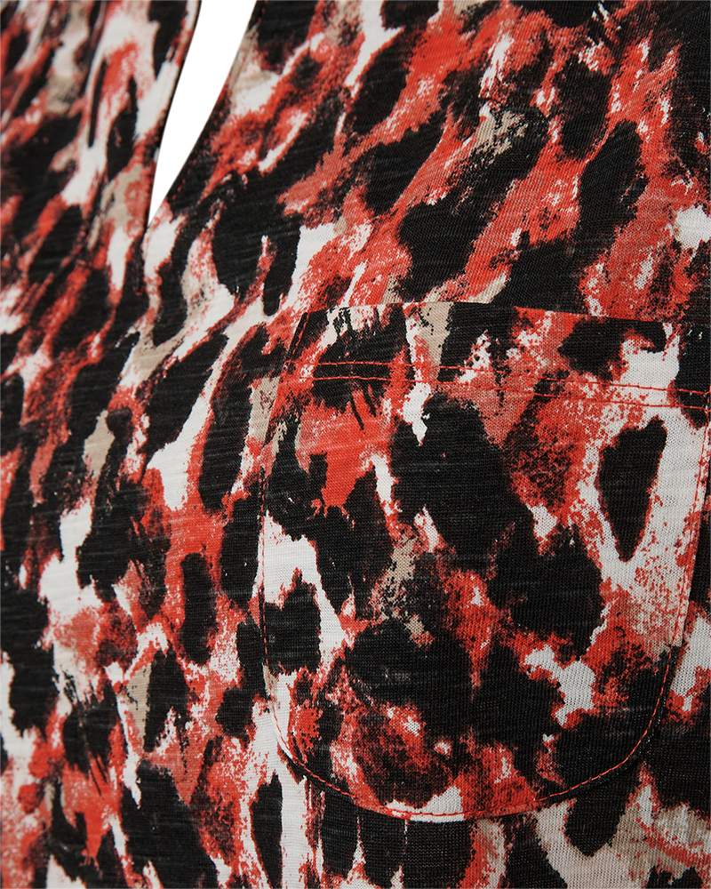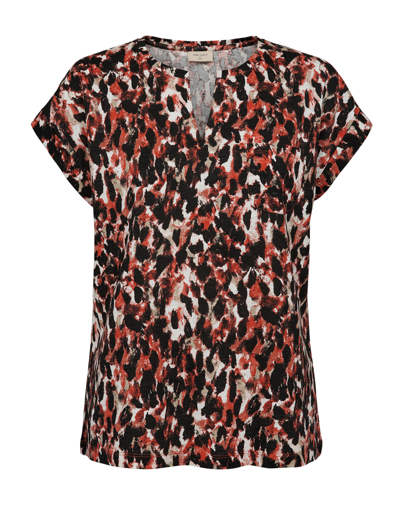 T-skjorten kommer med et moderne dyreinspirert print. Den har en feminin V-hals, korte ermer med oppbrett og en liten brystlomme som gir det lille ekstra.