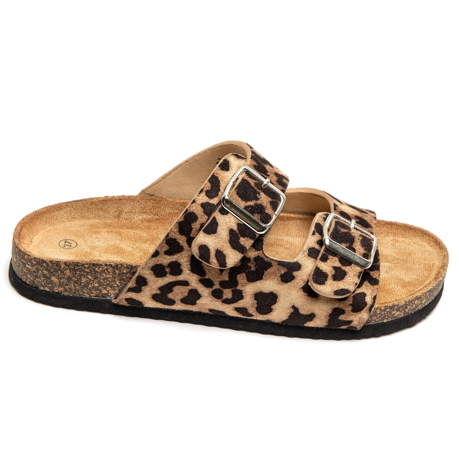 Piff opp antrekket med disse kule leopardmønstrede sandalene! De er like behagelige som de er tøffe – med myk innersåle og justerbare sølvspenner.