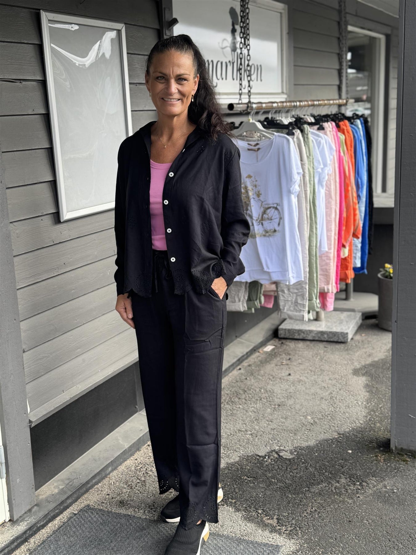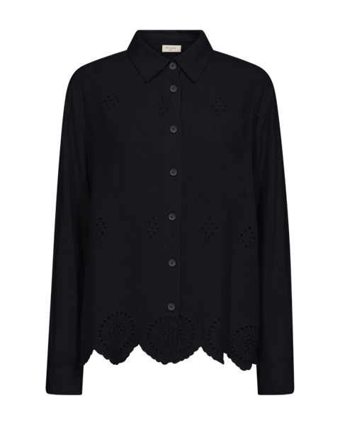 Sort skjorte med broderidetaljer – feminin klassiker fra Freequent