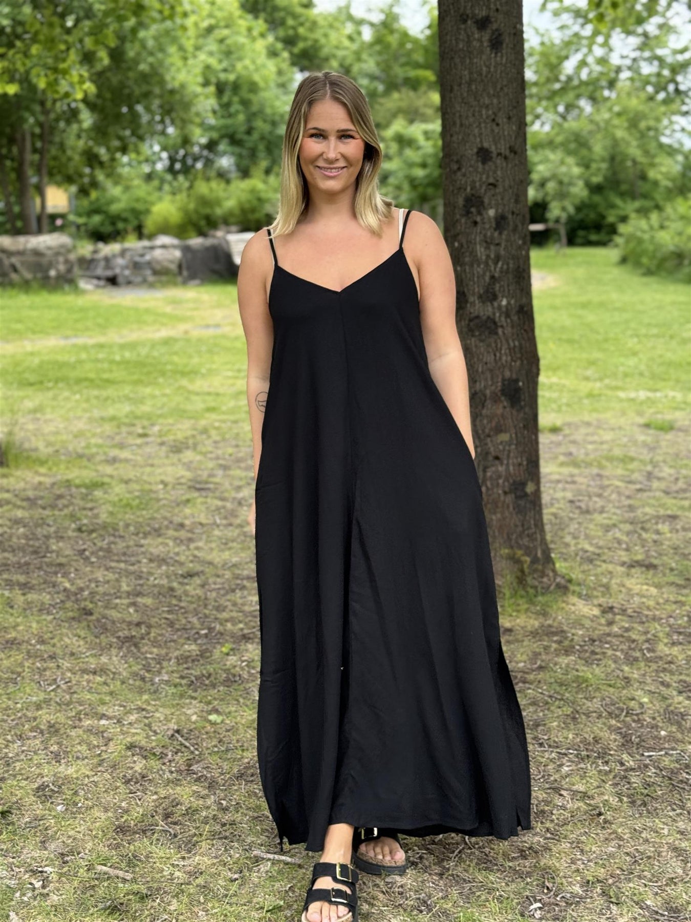 Sort linkjole med spagettistropper – luftig og elegant med A-fasong