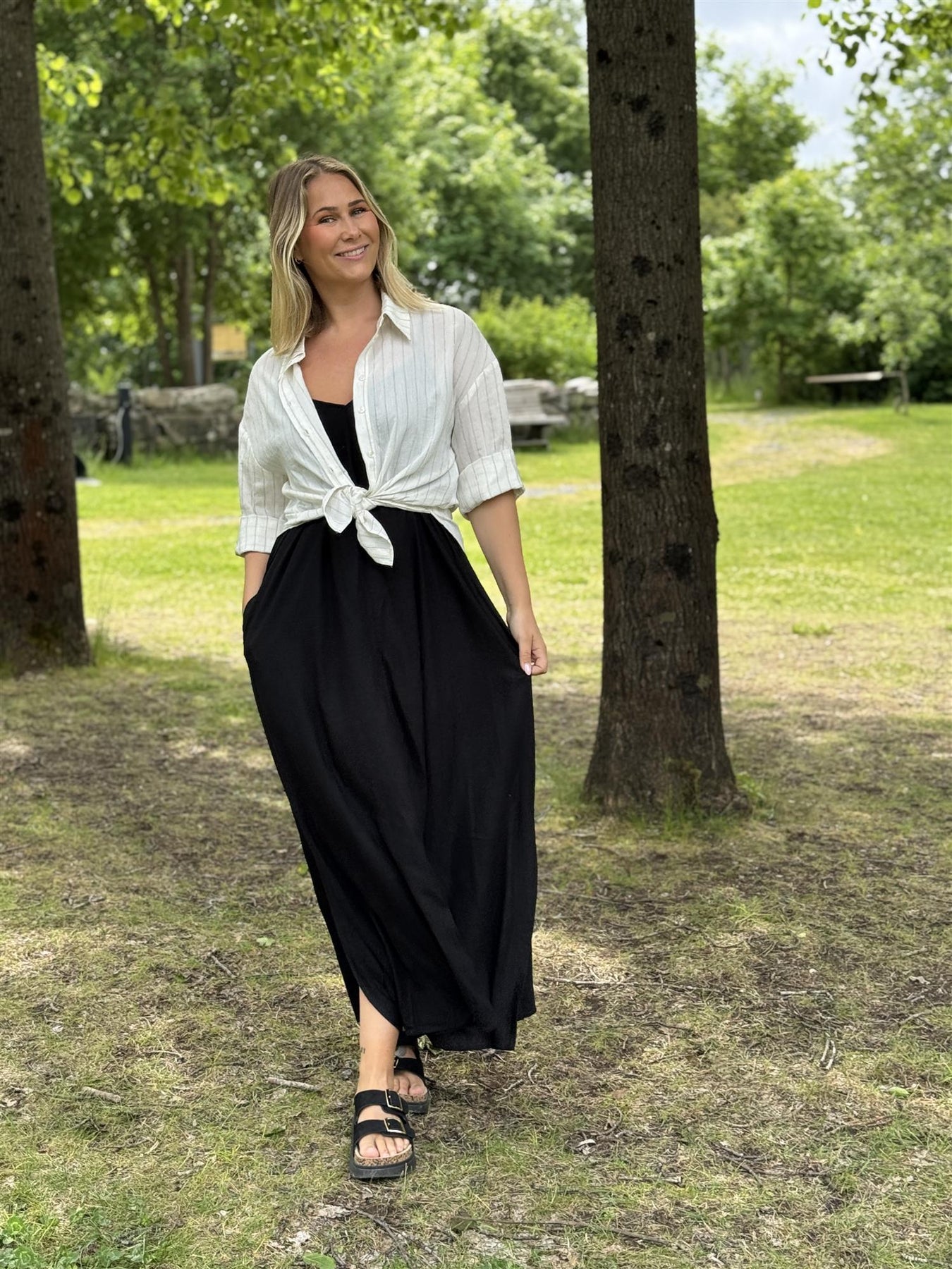 Denne svarte kjolen er selve definisjonen på sommerens "go to"-plagg! Med sitt enkle og stilrene uttrykk passer den til alt – enten du skal slenge på deg noe lett til strandturen, eller pynte deg med smykker og sandaler til en sommerkveld på byen.