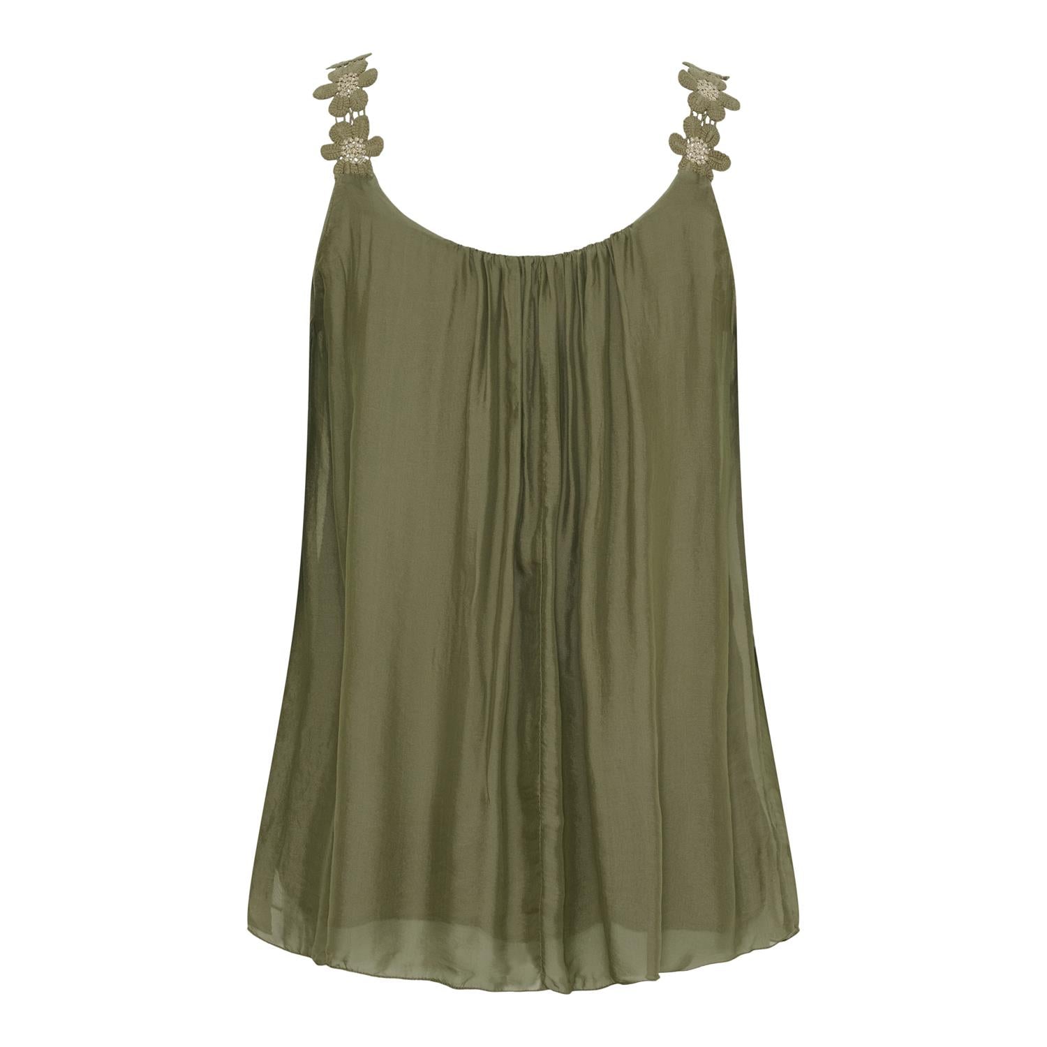 🌸 Sommerfavoritt! Blomstertopp i silke og viskose – Grønn 🌸