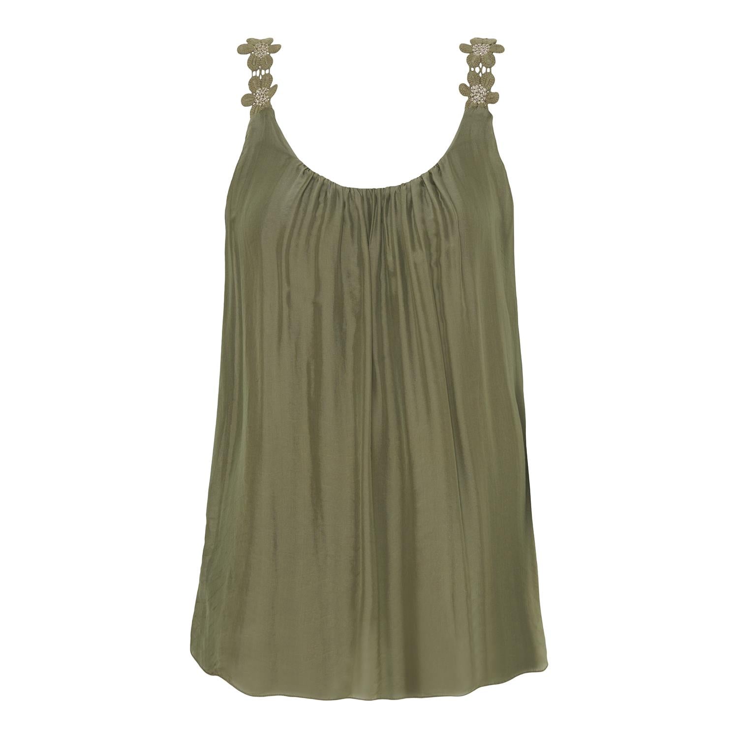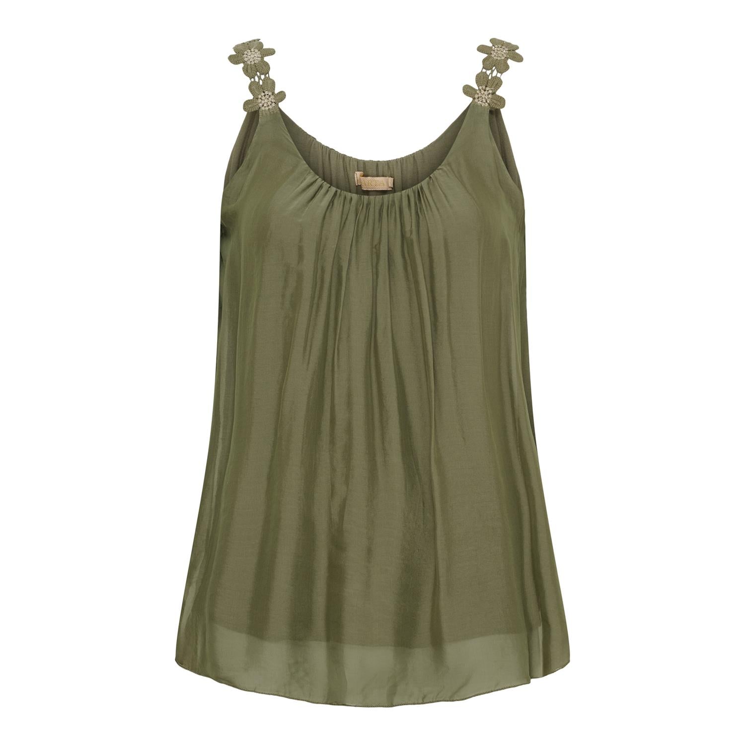 Denne luftige og feminine toppen er et must i sommergarderoben! Med nydelige blomsterstropper og lett, flagrende stoff i 30% silke og 70% viskose, er dette en topp som både ser og føles eksklusiv ut. Den har en løs og ledig passform som faller flatterende over kroppen – perfekt til varme sommerdager eller til fest med en jakke over skuldrene.