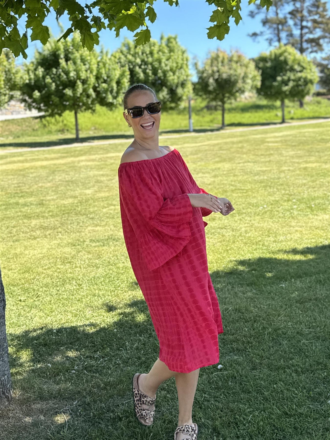 Gi garderoben din et skikkelig fargekick med denne herlige kjolen i en livlige fargen! En kjole som roper “ferie”, “glede” og “jeg bare strålte i dag” – uansett om du er på hytta, i byen eller bare koser deg i sola.