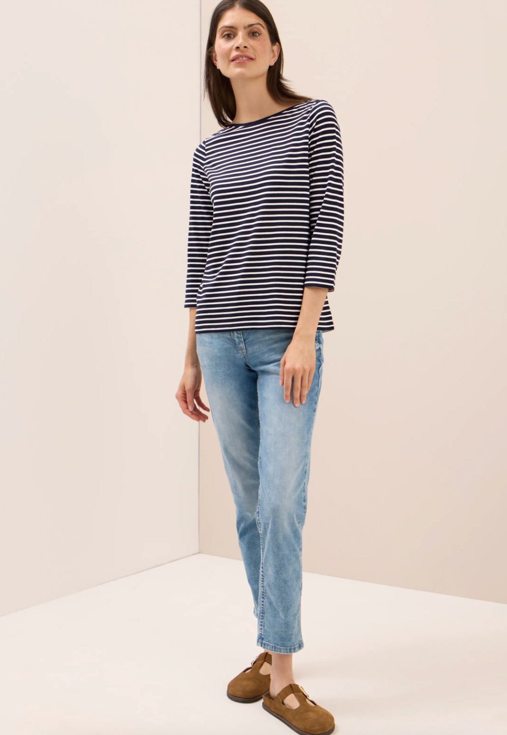 Cecil - Stripet genser med båthals og 3/4 ermer