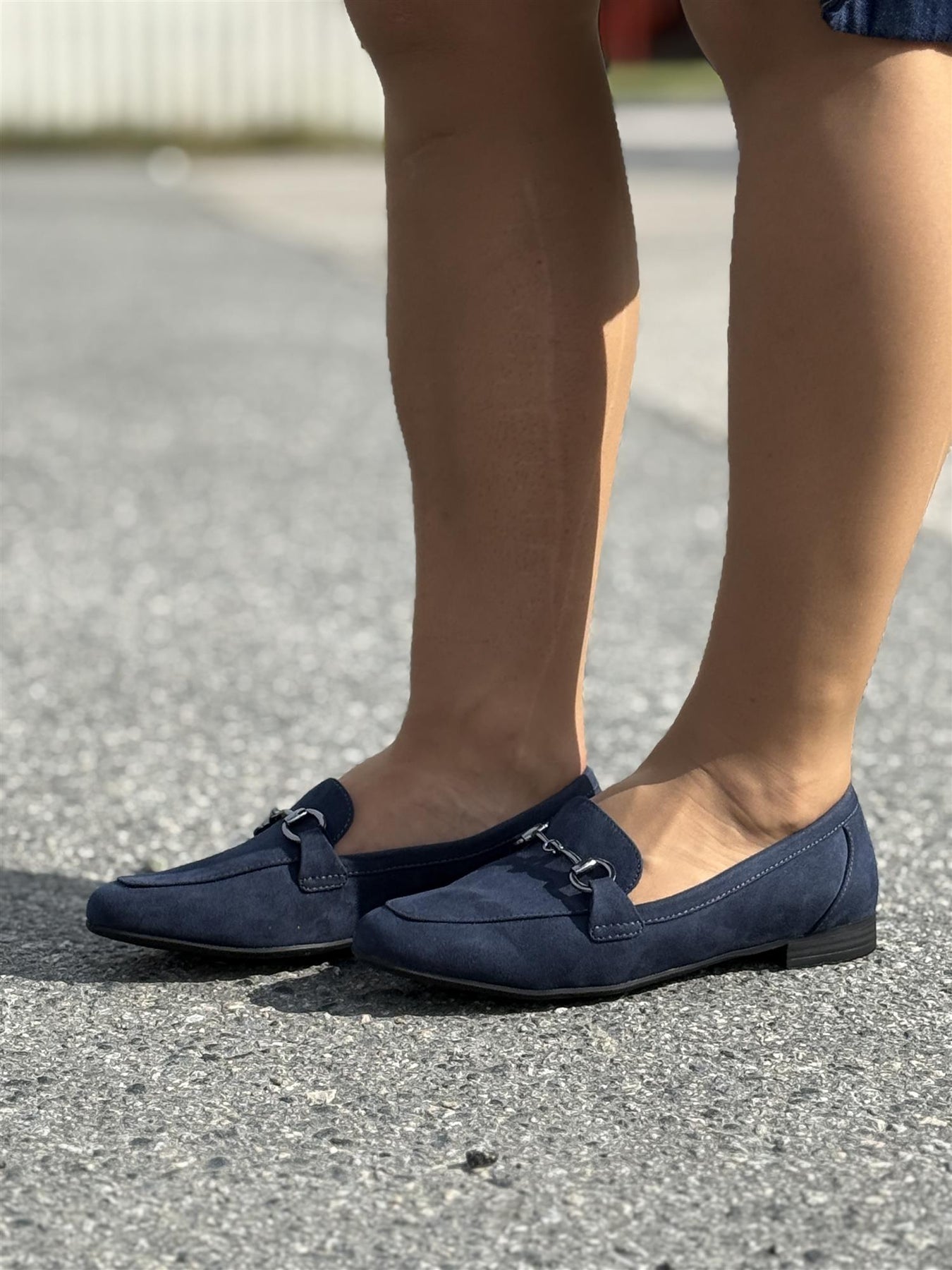 Mokkasinen har en lav blokkhæl på 20 mm, myk innersåle i tekstil/syntetisk materiale og et komfortabelt tekstilfôr på innsiden. Yttersålen i slitesterk syntet gir godt feste, så du kan bruke skoene hele dagen uten problem.