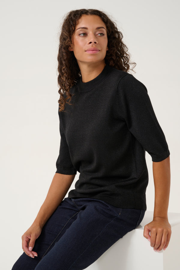 Genseren har korte ermer og en behagelig relaxed fit som gjør den lett og komfortabel å bruke. Perfekt alene til et skjørt eller jeans, eller under en blazer for en mer pyntet look. Den myke viskoseblandingen føles luksuriøs mot huden – og gir en lett glans som løfter hele antrekket.